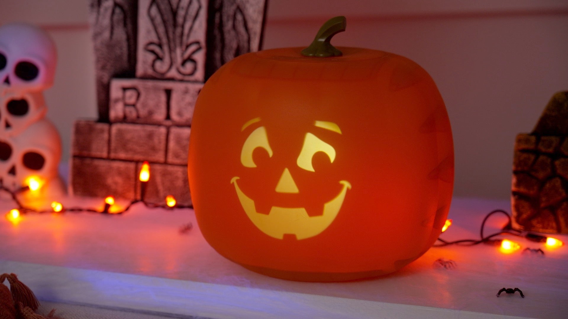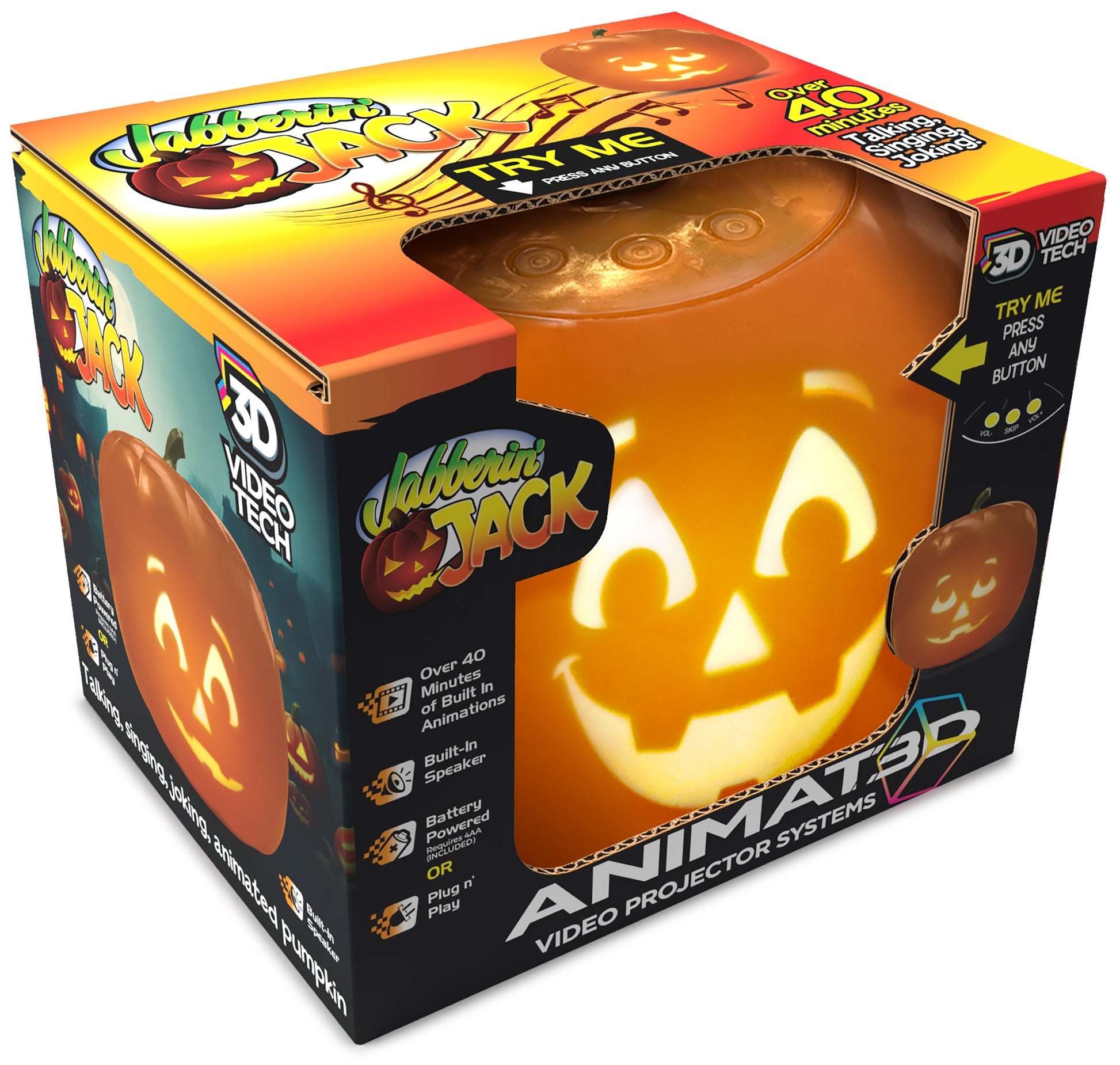 ANIMAT3D Blink Tech Jabberin' Jack Talking Animated Pumpkin with 8 Inch Screen and Built-in LED Light Array Projector + Speaker Includes 40 Minutes of Content