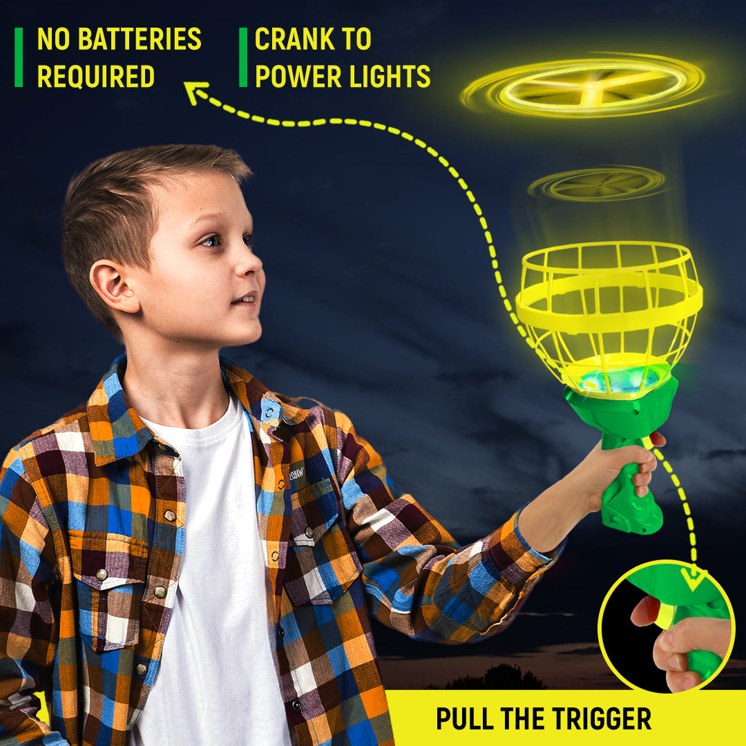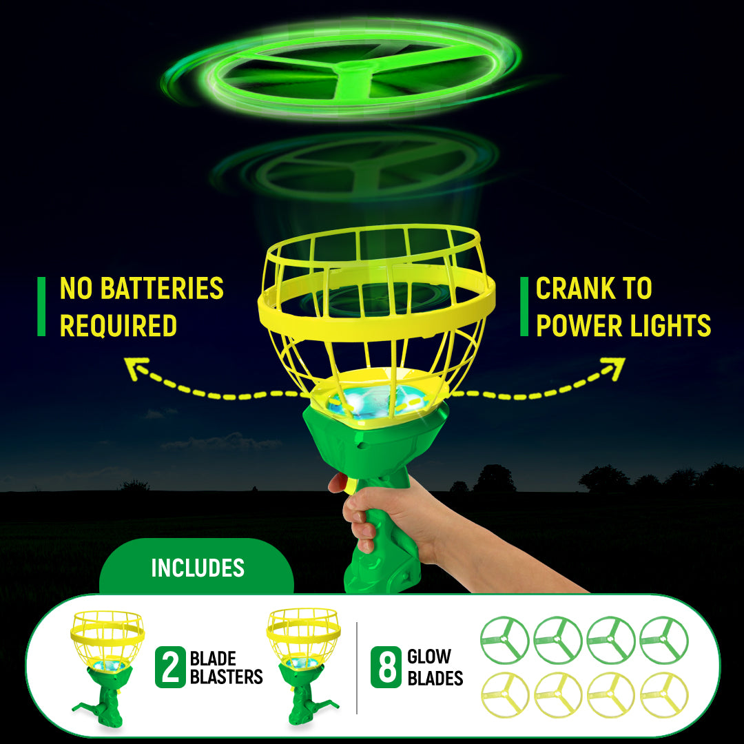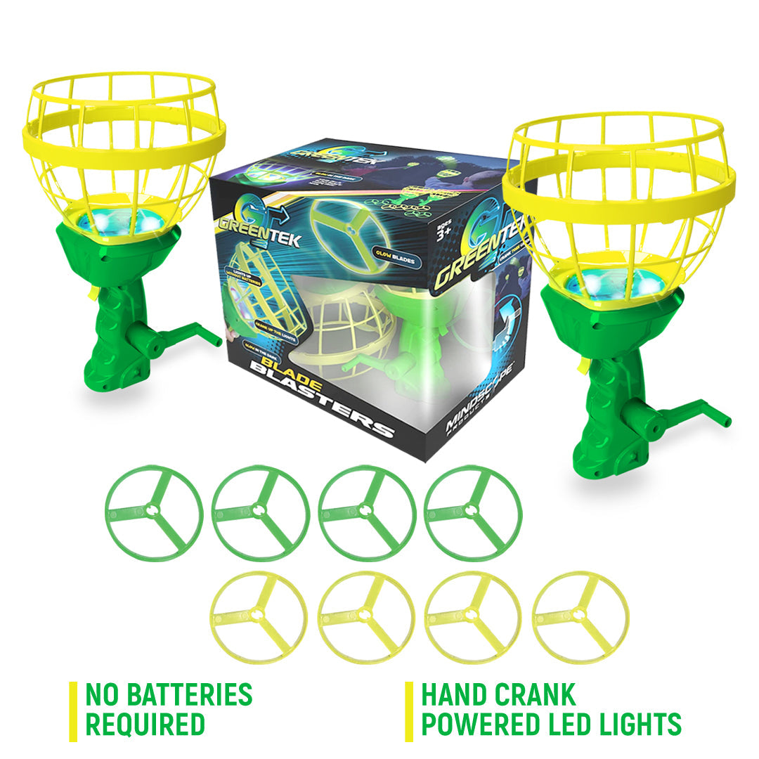 - LIGHT UP THE SKY, WITHOUT BATTERIES With The GreenTek Blade Blasters Outdoor Glow In The Dark Toss And Catch Game.